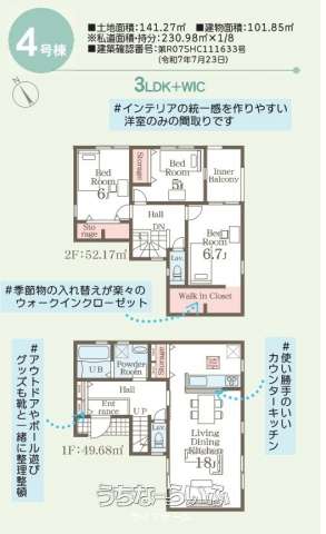 | 建物面積 | 101.85m² / 30.8坪 | 土地面積 | 141.2m² / 42.71坪 |