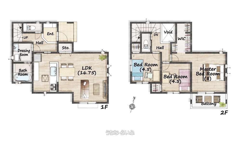 | 間取り | 3LDK ( 洋4.5 洋4.5 洋8 LDK16.7) | ||