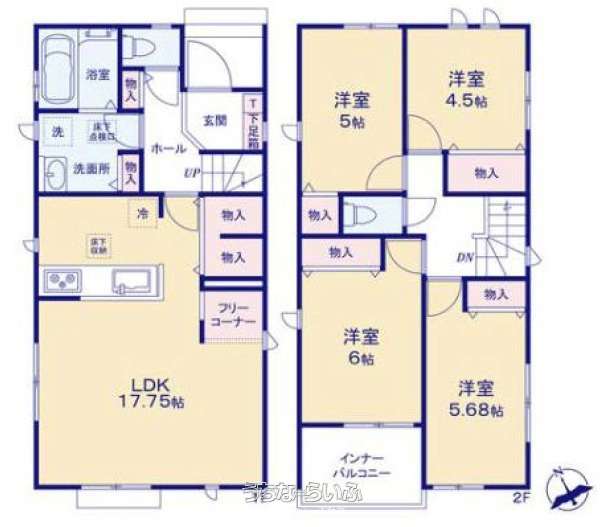 | 間取り | 4LDK ( 洋4.5 洋5 洋5.6 洋6 LDK17.7 ※フリーコーナー) | ||