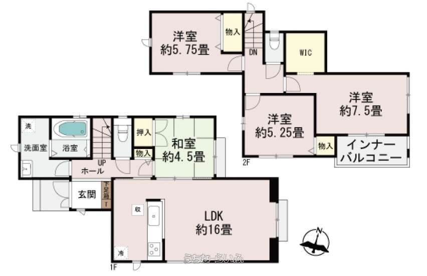 | 間取り | 4LDK ( 洋5.2 洋5.7 洋7.5 和4.5 LDK16 ※ウォークインクローゼット) | ||