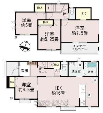 | 間取り | 4LDK ( 洋4.5 洋5 洋5.2 洋7.5 LDK16 ※ウォークインクローゼット) | ||