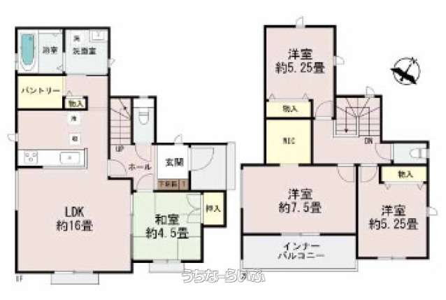 | 間取り | 4LDK ( 洋5.2 洋5.2 洋7.5 和4.5 LDK16 ※パントリー、ウォークインクローゼット) | ||