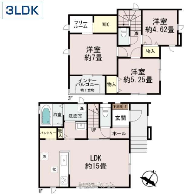 | 間取り | 3LDK ( 洋4.6 洋5.2 洋7 LDK15 ※フリールーム) | ||