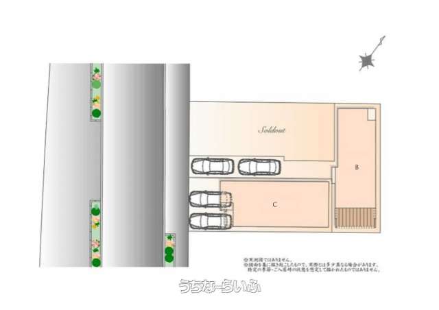 | 駐車場 | 2台 縦列 ※車種によっては台数が異なる事が御座います。 | 地目 | 宅地 |