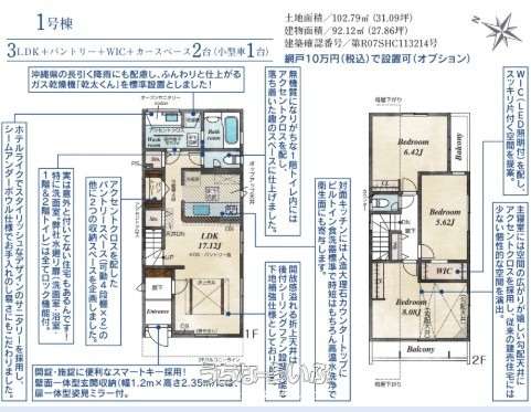 | 建物面積 | 102.79m² / 31.09坪 | 土地面積 | 92.12m² / 27.86坪 |