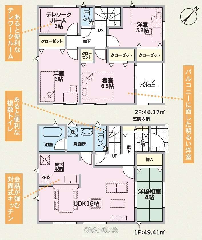 | 間取り | 4LDK ( 洋6.5 洋6 洋5.2 和4 LDK16 ※テレワークルーム3帖) | ||