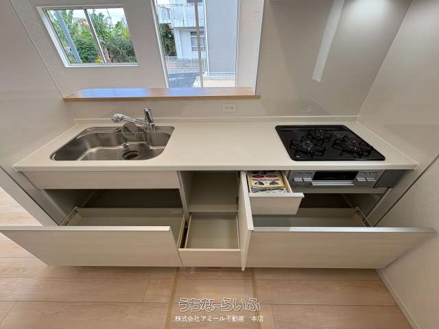 | キッチン | 給湯 、 省エネ給湯器 、 浄水器 、 ガスコンロ 、 コンロ三口以上 、 対面式キッチン(カウンターキッチン) 、 システムキッチン |