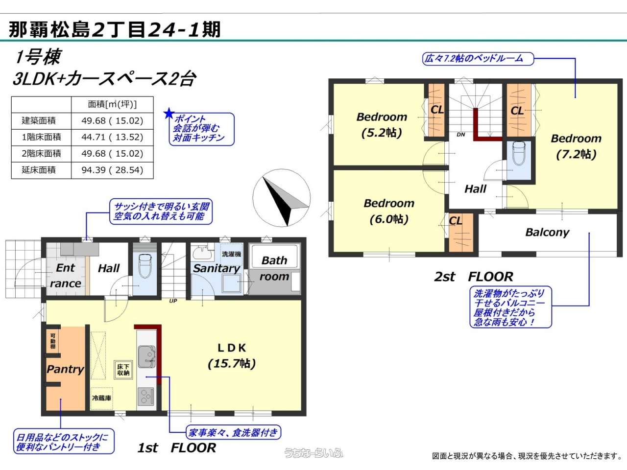 | 備考 | 【物件特徴】 ◇ご家族の生活動線を考えた間取り♪ ◇食料品や日用品などをストックしておく事ができる大容量パントリー♪ ◇全居室収納スペースあり♪ 【周辺環境】 ◇松島小学校まで徒歩約7分 ◇松島中学校まで徒歩約7分 ◇しゅりそら保育園まで車で約3分 ◇ローソン首里末吉一丁目店まで車で約2分 ◇フレッシュプラザユニオン真嘉比店まで車で約6分 ◇サンエー那覇メインプレイスまで車で約9分 ◇那覇市立病院まで車で約4分 ■現況: 建築中 ■建築確認番号: 第R07SHC11974号 |