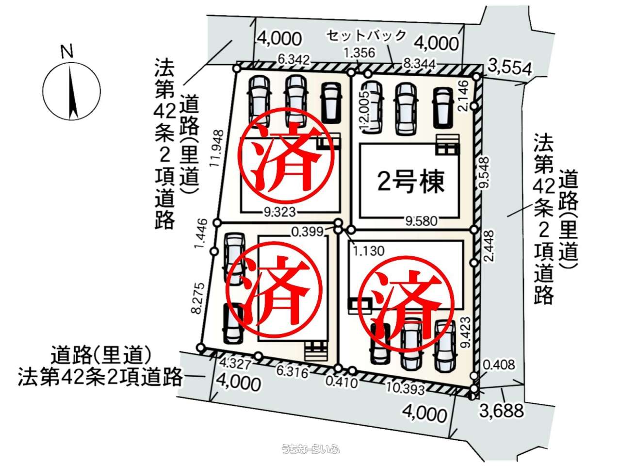 | 引き渡し | 相談 | 接道方向 / 道路幅員 | 北4m |