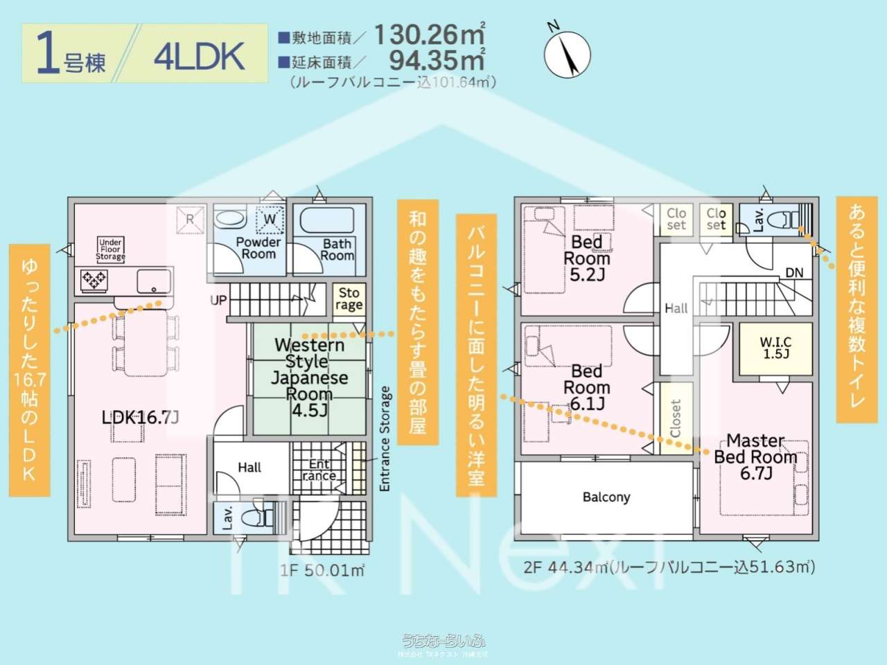 | 収納 | ウォークインクローゼット 、 シューズボックス 、 床下収納 、 全居室収納 |