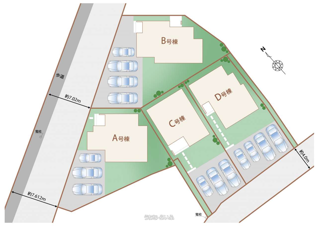 | 駐車場 | 3台 縦列 並列 ※※4台可能区画あり※車種により駐車可能台数は異なります。 | 地目 | 宅地 |