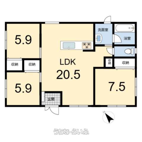 | 間取り | 3LDK ( 洋7.5 洋5.9 洋5.9 LDK20.5) | ||