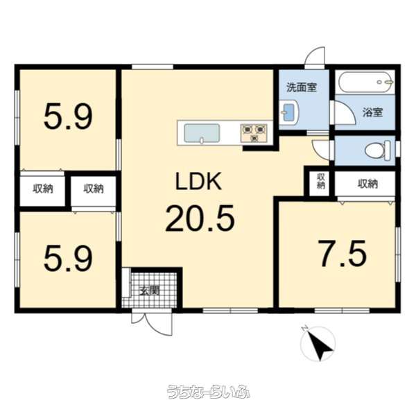 | 間取り | 3LDK ( 洋7.5 洋5.9 洋5.9 LDK20.5) | ||