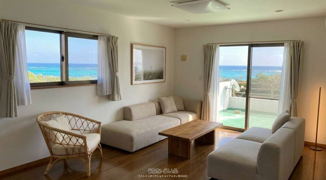 【宮古島・シギラリゾート分譲地内赤瓦が彩るオーシャンビュー邸宅】■宮古空港から車約15分(約9km)■赤瓦が連なる美しい景観と調和した邸宅■約140坪の庭、プール・菜園・ジャグジー設置も可能な自由度■広いバルコニーから臨む圧巻のオーシャンビューと朝日の眺望■徒歩3分の海岸ではサンゴが生息、豊かな自然と調和する暮らし■家具・家電付き、自家発電設備(単相100/200V・出力5.5KVA)完備で台風時も安心■移住・別荘・企業保養所に最適