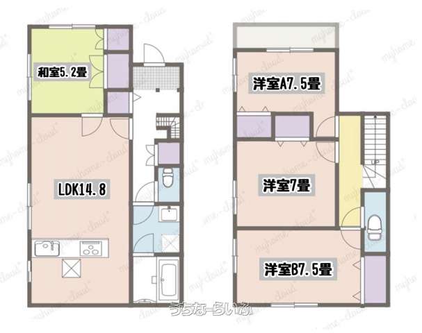 | 間取り | 4LDK ( 洋7.5 洋7.5 洋7 洋5.2 LDK14.8) | ||