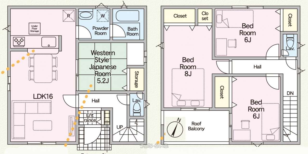 間取り | 4LDK ( 洋8 洋6 洋6 和5.2 ※ルーフバルコニー) | ||