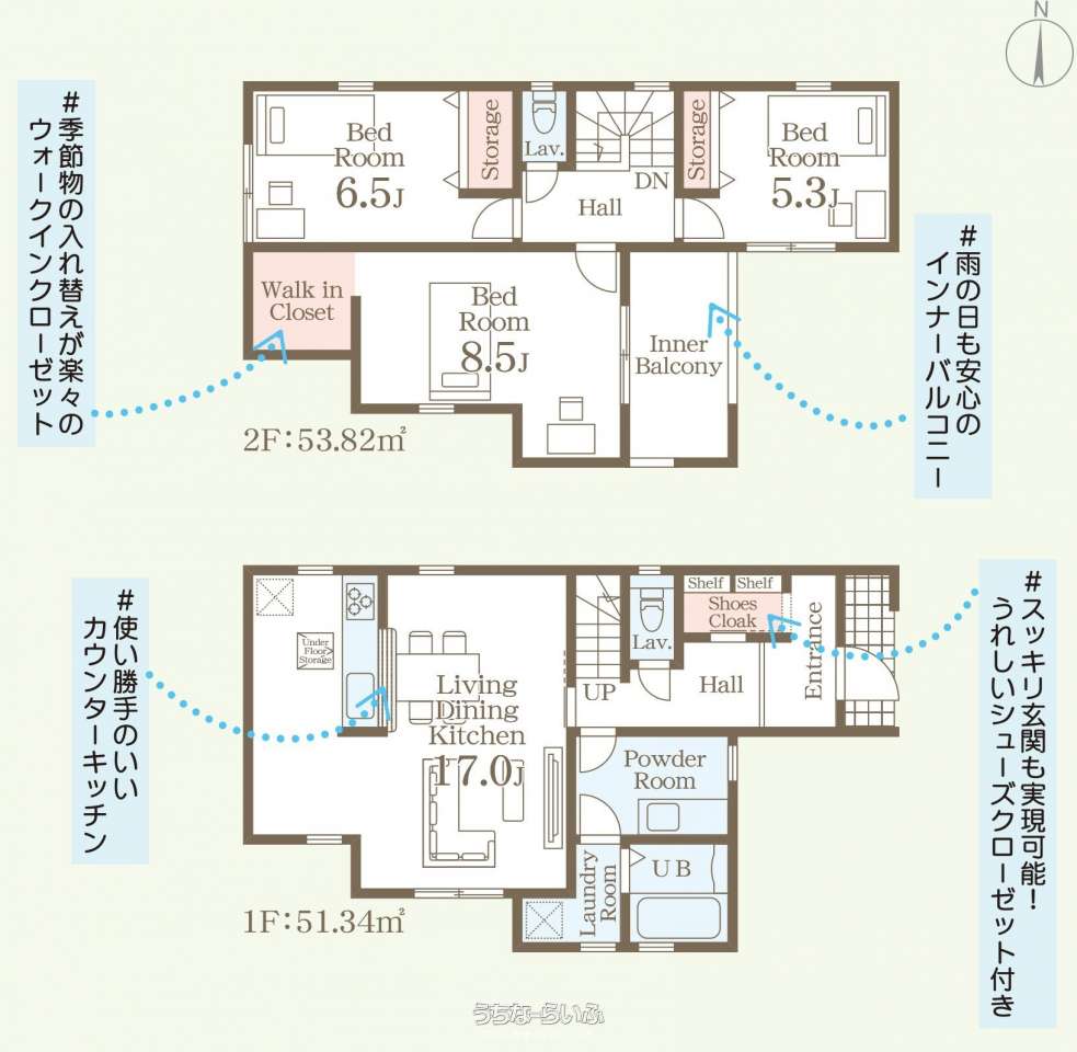 | 間取り | 3LDK ( 洋8.5 洋6.5 洋5.3 LDK17 ※全室収納付き) | ||