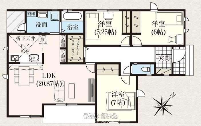 | 間取り | 3LDK ( 洋5.25 洋6 洋7 LDK20.87) | ||