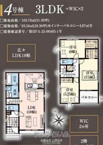 | 建物面積 | 93.56m² / 28.3坪 | 土地面積 | 103.78m² / 31.39坪 |