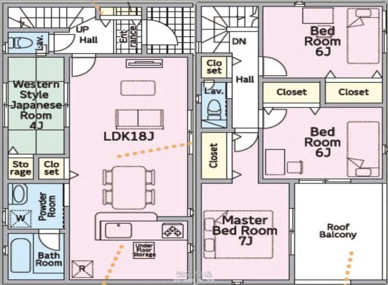 | 間取り | 4LDK ( 洋7 洋6 洋6 和4 LDK18 ※実績のある施工会社がこだわった間取りです!) | ||