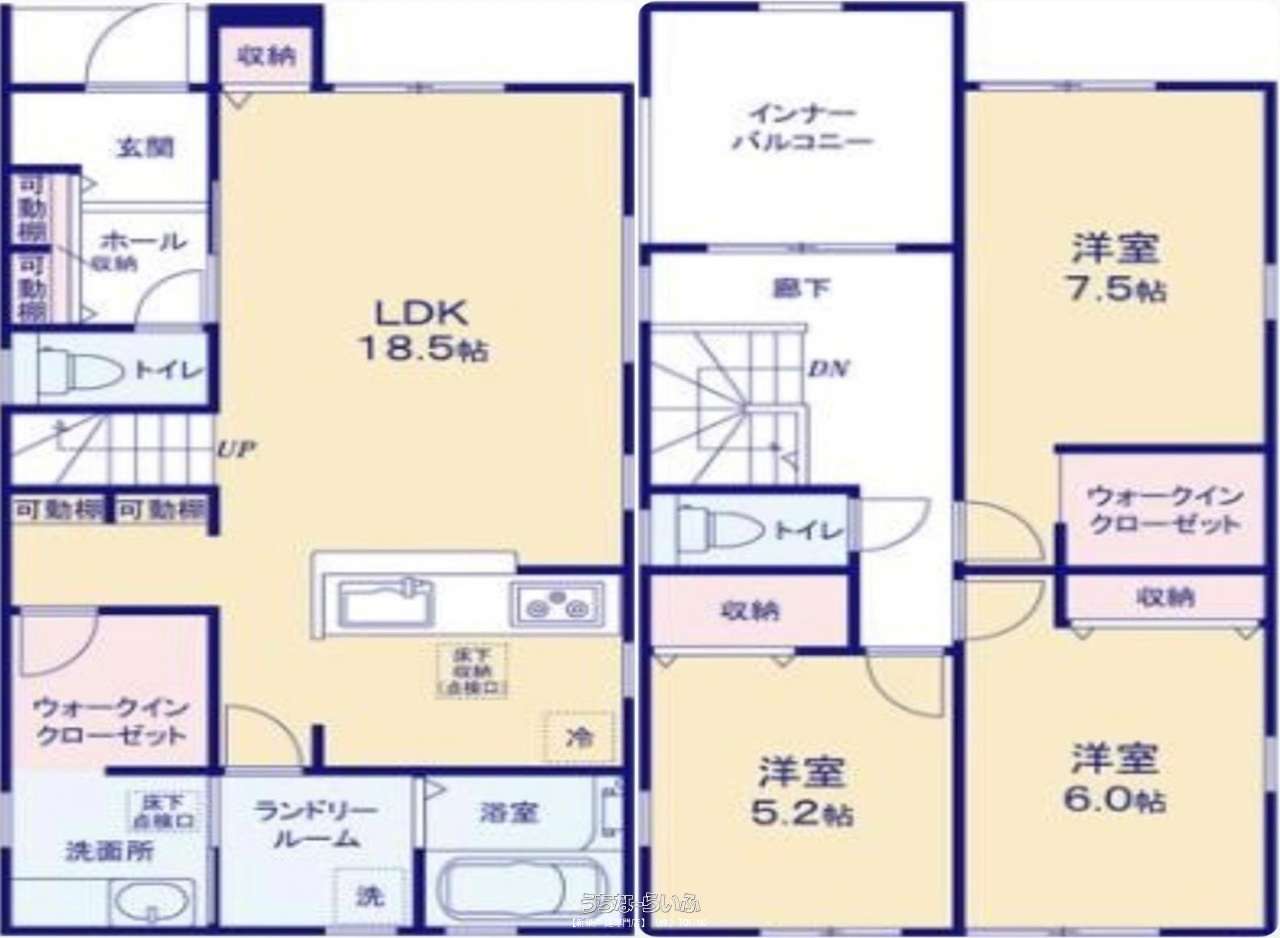 | 間取り | 3LDK ( 洋7.5 洋6 洋5.2 LDK18.5 ※実績のある施工会社がこだわった間取りです!) | ||