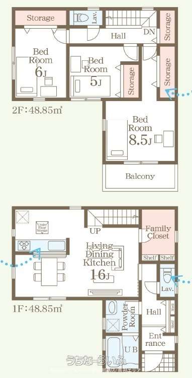 | 間取り | 3LDK ( 洋8.5 洋6 洋5 LDK16 ※ファミリークローゼット) | ||