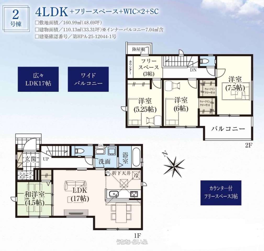| 建物面積 | 110.13m² / 33.31坪 | 土地面積 | 160.99m² / 48.69坪 |