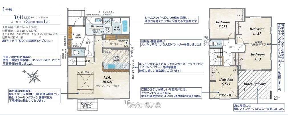 建物面積 | 110.54m² / 33.43坪 | 土地面積 | 162.28m² / 49.08坪 |