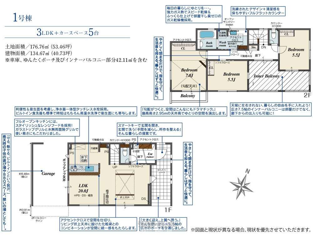 | 建物面積 | 134.67m² / 40.73坪 | 土地面積 | 176.76m² / 53.46坪 |