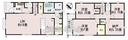 | 間取り | 3SLDK ( 洋7 洋5.2 洋3.7 SLDK18 ※ファミリークローゼット+納戸5.25帖☆通常のお部屋として利用できます。) | ||