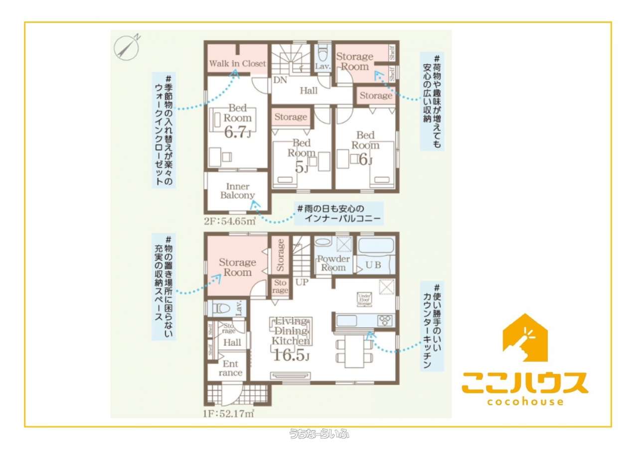 | 収納 | ウォークインクローゼット 、 シューズボックス 、 床下収納 、 全居室収納 |