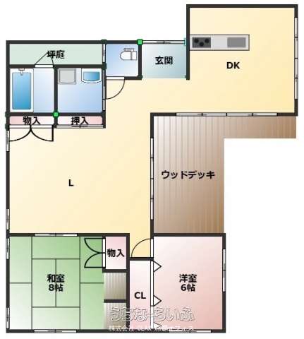 | 間取り | 2LDK ( 洋6 洋8) | ||