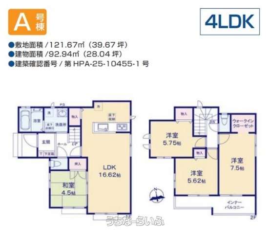 | 建物面積 | 92.94m² / 28.11坪 | 土地面積 | 121.67m² / 36.8坪 |