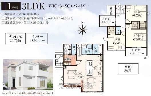 | 建物面積 | 112.82m² / 34.12坪 | 土地面積 | 155.79m² / 47.12坪 |