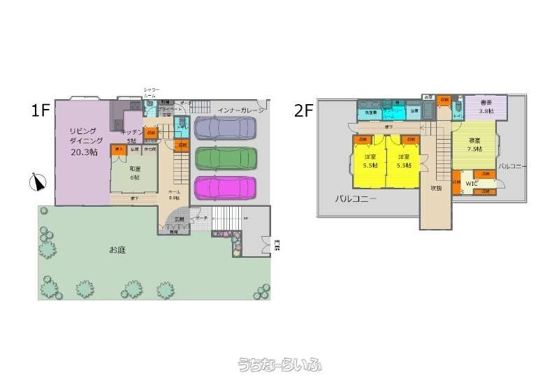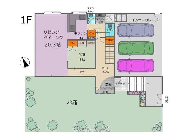 | 建物設備 | 上水道 、 ルーフバルコニー 、 庭付き 、 吹抜 |