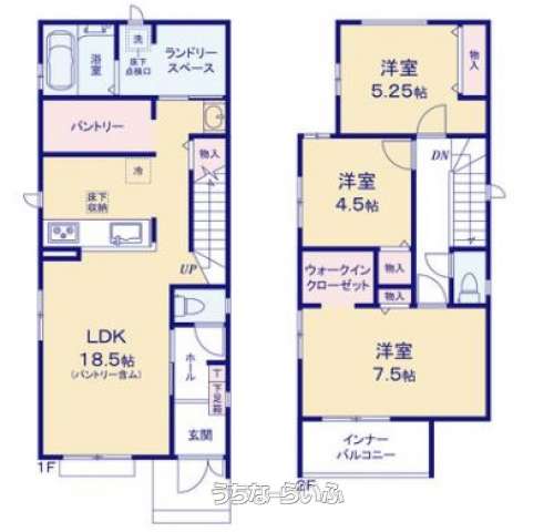 | 間取り | 3LDK ( 洋5.2 洋4.5 洋7.5 LDK18.5) | ||