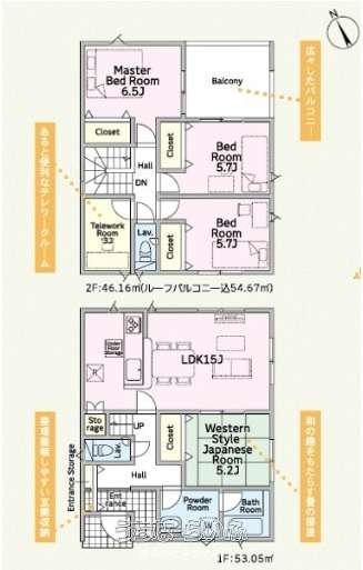 | 間取り | 4LDK ( 洋5.7 洋5.7 洋6.5 和5.2 LDK15 ※テレワークルーム:3帖) | ||