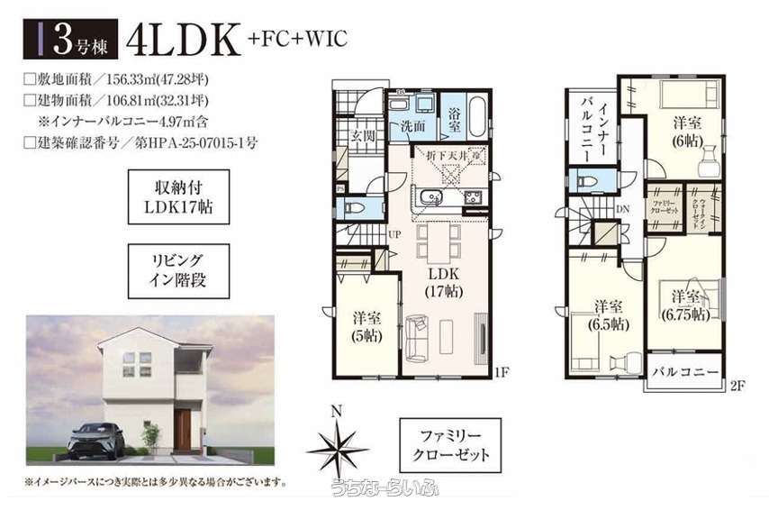 | 建物面積 | 106.81m² / 32.31坪 | 土地面積 | 156.33m² / 47.28坪 |