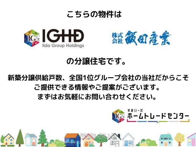 | 備考 | 🍉🍉はじめまして、ホームトレードセンターです🍉🍉 ホームトレードセンターは不動産事業を幅広く展開する「飯田グループホールディングス」の一員です! 「より多くの人々が幸せに暮らせる住環境を創造し豊かな社会づくりに貢献」するという経営理念で、 お客様に低コストで良質な住まいの情報をご提供致します。 住宅探しはもちろん、不動産のことなら私たちにご相談ください。 🍎飯田グループホールディングス🍎 ⭐『一建設(リーブルガーデン)』 ⭐『アーネストワン(クレイドルガーデン)』 ⭐『飯田産業(ハートフルタウン)』 ⭐『タクトホーム(グラファーレ)』 ⭐『東栄住宅(ブルーミングガーデン)』 ⭐『アイディホーム(リナージュ)』 飯田グループ物件すべての販売専門窓口が、当社ホームトレードセンターです😊 🍎飯田グループホールディングス⭐ホームトレードセンターで購入するメリット🍎 ☆6つプレミアムサービス ①圧倒的な物件情報量とグループならではのスピーディーで円滑なサポート 日本で一番選ばれている分譲住宅メーカーだからお客様の「欲しい住宅」が必ず見つかります。 グループならではのスピード感のある情報提供とサポート体制で、お客様のご要望を実現します。 住宅検索サイトに掲載されている新築物件の大半が飯田グループの物件です。 ②飯田グループだから実現できるプレミアムな提携金利が利用可能 同じ借入金額でも利用する金融機関で総支払額は大きく異なります。 グループ内金融機関、提携金融機関との連携によりお客様のご要望に沿った住宅ローンをアテンド致します。 「住宅購入=新居が手に入る&団体信用生命保険に加入して安心して住める」 つまり賃貸リスクを払拭することが可能になります。 お客様が「お得に」「安心して」住宅を購入できる様にお手伝い致します。 私たちは住宅知識×住宅ローンの知識×保険の知識の3つのスペシャリストです。 ③建築工法・グループ分譲ビルダーの全てを熟知したスタッフの説明 飯田グループの物件は主要6社が分譲しております。当社社員はグループ一員のため、各ハウスブランドの特徴やメリットを熟知し、 お客様の疑問点に関して適切にご説明いたします。完成物件のプレゼンテーションはもちろん、未完成物件は設計図面や仕様書を用いる事で 正確な情報をお伝えします。 ④未公開物件・最新価格情報などグループならではの連携により、スピード感のある情報をご提案 全国にある飯田グループのネットワークから販売中物件はもちろん、未公開物件を含め、お客様にぴったりの物件をご紹介いたします。 さらに最新価格情報などお客様にとって、“お得”な情報を、スピーディーにご提供させて頂きます。当社だから実現できるご提案に是非ご期待ください。 ⑤「誰もが当たり前に家を買える社会」を実現するための、夢を叶えるお手伝い 住宅ローンが組めるかな?頭金が無いと大丈夫かな?おうち探しは初めてで不安・・・ お客様の不安を「安心」に変え、二人三脚で住宅取得までの全てをサポートさせて頂きます。 ⑥買う時も、買った後も手厚い安心のアフターサポート体制 新生活にワクワクする一方で、初めての住宅購入に不安は付きものです。 「建物に不具合がある」「リフォームを検討している」「どこに相談したら良いか分からない」 お住まいになられた後の“困った”も何でもご相談下さい。 当社スタッフはお引渡し後も、気軽に末永くご相談できるパートナーになることをお約束します🥰 ■現況: 完成済 |