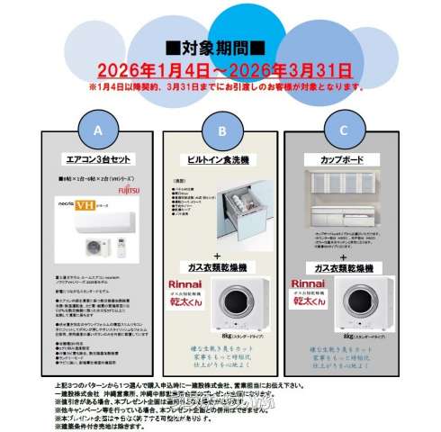 | 設備備考 | 設備表記は図面と現況が相違する場合がございます。図面及びチラシ、WEB上の表記と現地及び仕様書等の表記が異なる場合は現況優先となります。ご契約後、お客様の別途費用により取付け可能な設備工事がございますので、詳しくは弊社営業スタッフまでお問合せください!物件は販売中につき、お申込み及びご契約予定、ご契約済みとなる場合がございますので、予めご承知おきください。物件詳細は弊社までご連絡ください |