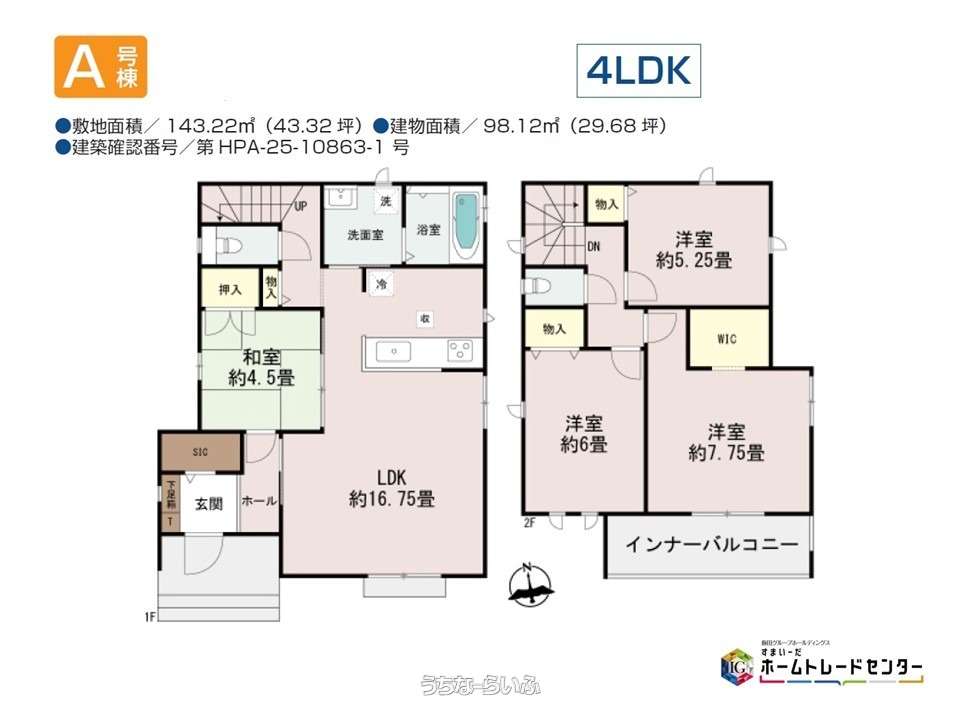 | 建物面積 | 98.12m² / 29.68坪 | 土地面積 | 143.22m² / 43.32坪 |
