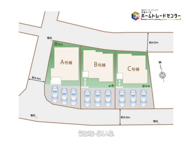 | 引き渡し | 相談 (契約後約1ヶ月) | 接道方向 / 道路幅員 | 北4.9m、 南4m、 西3.9m |