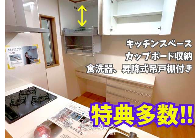 | 備考 | ※来店時にこちらの画面をスタッフにお見せ下さい。 ※値引きや他キャンペーンとの併用はできません。 ※期間中に値下げ等の価格変更があった場合は対象外となります。 ※一部対象外の物件・号棟がございます。詳しくはスタッフまでお問い合わせください。 ■現況: 完成済 |