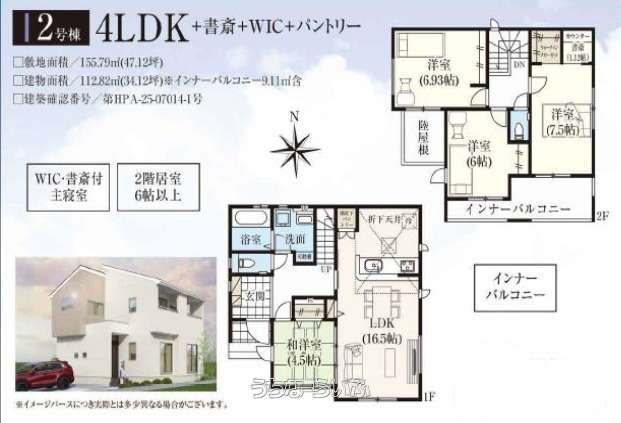 | 建物面積 | 112.82m² / 34.12坪 | 土地面積 | 155.79m² / 47.12坪 |