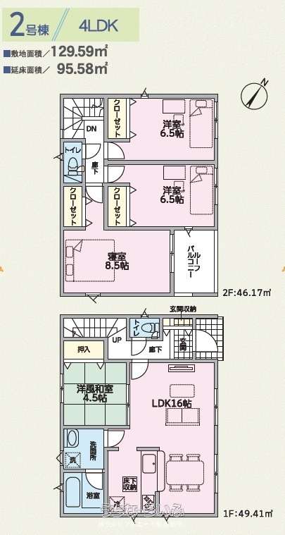 | 間取り | 4LDK ( 洋6.5 洋6.5 洋8.5 和4.5 LDK16) | ||