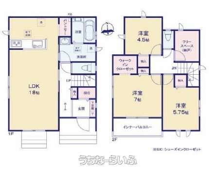| 間取り | 3LDK ( 洋7 洋5.7 洋4.5 LDK18 ※納戸) | ||