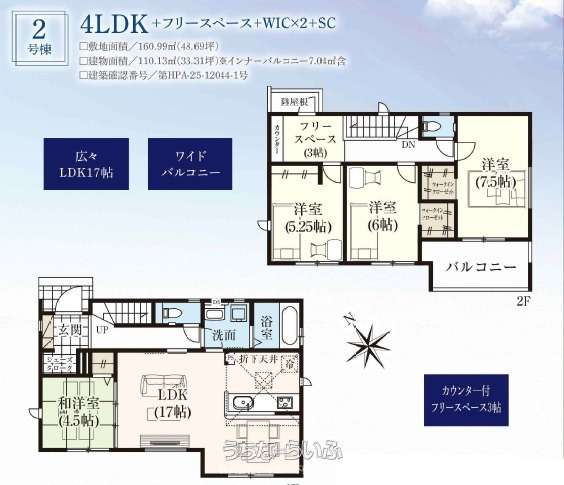 | 間取り | 4LDK ( 洋5.2 洋6 洋7.5 和4.5 LDK17) | ||