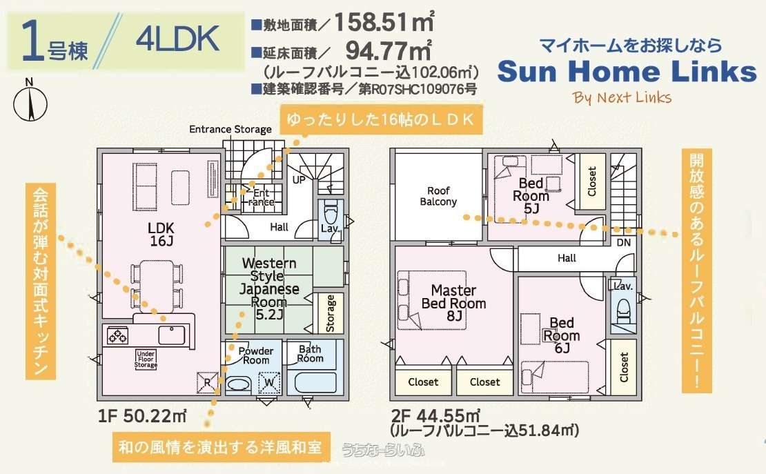 | 評価・証明書 | 設計住宅性能評価書 、 建設住宅性能評価書(新築時) 、 フラット35・S適合証明書あり |