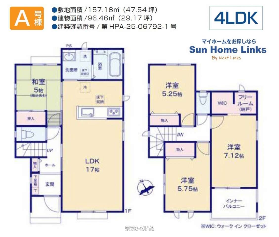 間取り | 4LDK ( 洋7.1 洋5.7 洋5.2 和5 LDK17 ※和室あり、ウォークインクローゼット、フリールーム、インナーバルコニー) | ||