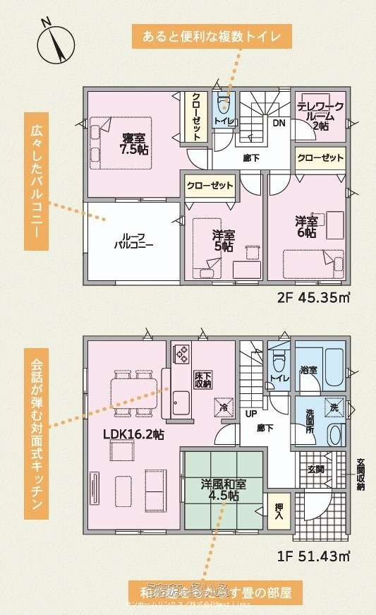| 間取り | 4LDK ( 洋7.5 洋6 洋5 和4.5 LDK16.2 ※ルーフバルコニー) | ||